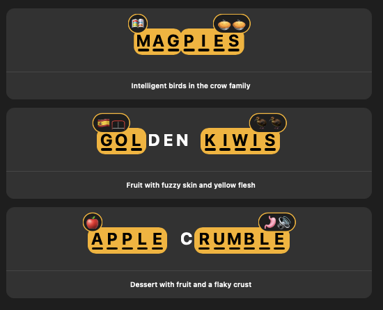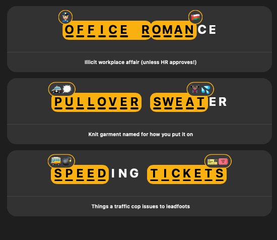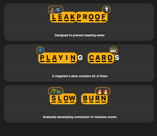 - Group Related Emojis – Break the puzzle into chunks — the emojis usually follow a logical sequence (subject → action → object, or noun → modifier → idea).
