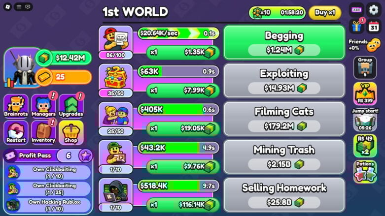 In Roblox Cash Cash Idle, your main goal is to build a gigantic money-making world all for yourself. You get to open new types of businesses to produce cash, and then you can make them even better to multiply all the profits you earn while playing the fun game.